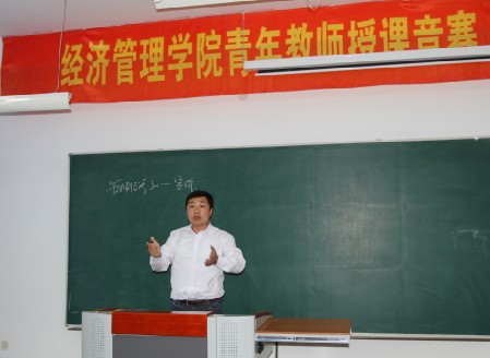 经济管理学院第二届青年教师授课竞赛(决赛)于2012年5月9日13:30在丹青楼624教室举行。教务处翟雪峰处长、高教研究所倪志英所长、王逢瑚教授、赵振华教授、本科教学督导员刘会民教授担任本次竞赛评委,经济管理学院全体教师及部分学生现场观摩竞赛。