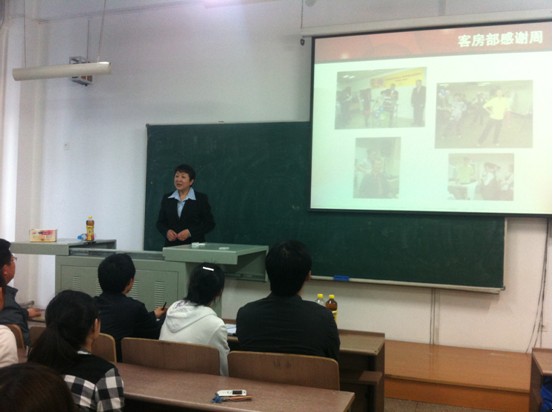 陈雪芬女士首先向大家简单讲述了她的职场生涯,并通过互动的方式介绍了世界500强企业万豪国际集团的概况。从制作精美的宣传视频,到简单大方的名片,再到陈女士的得体举止,都展现出一个跨国集团所特有的品质和理念。结合一个个精彩生动的职场例子,陈女士为大家细致地讲解了人力资源部在企业中的具体职能以及其所起到的不可替代的作用。针对现场的所有同学,陈女士盛情邀请大家加入万豪国际集团,并对同学们疑问,一一进行了详细的答复。