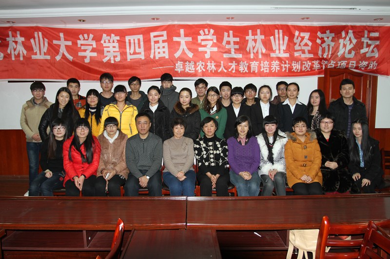 2014年12月25日,东北林业大学第四届大学生林业经济论坛在经济管理学院学术报告厅隆重召开。本次论坛得到了卓越农林人才教育培养计划改革试点项目的大力支持,展现了农林经济管理专业复合应用型人才培养的教学改革成果。曹玉昆老师、朱洪革老师、万志芳老师、张於倩老师出席了本次论坛。本次论坛围绕林业生态建设、林业产业发展、林区民生问题、林业信息化建设、林产品贸易等林业经济热点问题行了深入的探讨交流。会议共收到论文40余篇,经过审核,最终选出14篇论文参加答辩。