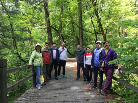 五月的凉水国家级自然保护区,树木葱郁,生机勃勃。刚下车,教职工就迫不及待地来到凉水博物馆,聆听李场长对凉水自然保护区的整体情况介绍,并参观馆藏的各种动植物标本。一道道树木年轮向我们诉说着大自然沧海桑田的变迁,一件件动物标本向我们展示着森林世界的生机与灵动。教职工们一边听一边记,不时与工作人员就感兴趣的话题进行交流。曾经在凉水学习或生活过的老教师还为年经教工讲述了他们曾经的无悔青春和多彩芳华,在场众人无不为老一代东林人的奋斗精神所感动。