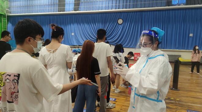 接到任务后,各支部教工党员踊跃报名。穿上防护服、戴上防护口罩,志愿者们变身为“白衣天使”,忙碌于每个需要他们的地方,积极协助医务工作者进行核酸检测工作。闷热沉重的防护服下,一举一动都显得格外艰难。但他们仍细致地验证身份、登记信息、给试管贴码,看似简单的动作每个人都重复了上千次,几个小时的工作,志愿者们却丝毫未察觉时间的流逝,专心忘我地投身于志愿服务中。