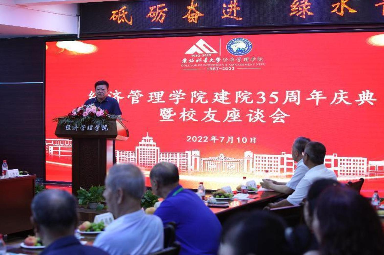 踔厉奋发,同心同向。35年来,经济管理学院秉承“学参天地,德合自然”的校训,与学校共生共荣、同行共济。会上,东北林业大学党委常委、副校长刘守新教授代表学校致辞,他表示:“校友是学校最闪亮的名片,经管学院35年来培养出了一大批优秀人才,他们活跃在祖国的大江南北,为国家林业经济发展做出了突出的贡献。”刘守新副校长的致辞表达了学校领导对学院发展建设的关怀和指导,沐浴着学校的七秩荣光,激励着经济管理学院续写新华章。