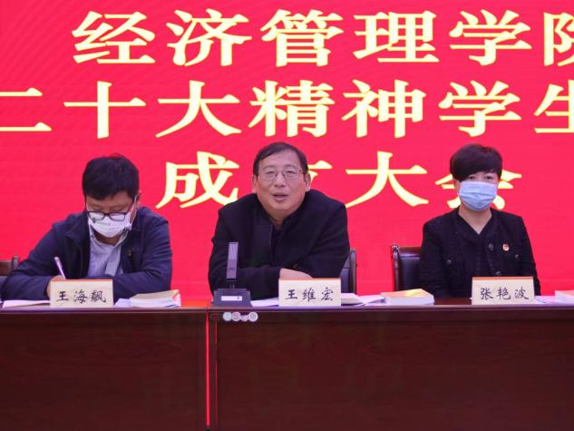 学院党委书记王维宏在讲话中对研习团成员提出学习要求:一是要深刻理解学习党的二十大精神的重要性及传递的重要信息。二是结合党的召唤和国内国际形势的需要为研习团成员阐述了青年学生为什么要学习党的二十大精神。三是就如何学习党的二十大精神给予了具体建议和指导。