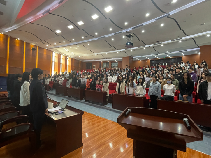 开班式结束后,张艳波书记以《扎根基层服务青年 以实际行动践行习近平总书记重要讲话精神》进行党课第一讲。张书记以党的二十大报告中习近平总书记多次提到“基层”一词为话题,从“到哪里去”、“ 为什么去”、“ 应该怎么样去”三个维度展开生动地讲解。到基层去,就要到群众需要的地方去,到能发挥青年光与热的地方去。张书记鼓励同学们要在当下留下奋斗的青春足迹,不断积累,才能厚积薄发。