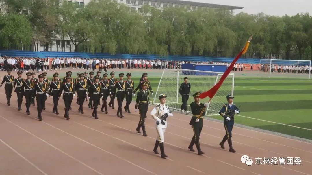 伴随着整齐的步伐与铿锵有力的解说词,每个方队都展示了必胜的勇气和决心。“生如夏花向朝阳,不负韶华斩锋芒”是每个方队的生动写照;“长风破浪会有时,直挂云帆济沧海”是每个学子脸上乐观的模样。他们用极具活力、充满创意的入场表演展示着经管学子昂扬向上的精神风貌!方阵检阅结束后,随之而来的是庄重而又严肃的升旗仪式。国旗仪仗队满腔热忱、敢当重任的形象充分展现了学子们满目山河的伟大志向。伴随着《义勇军进行曲》,五星红旗在阳光下冉冉升起、随风飘扬,全体师生行注目礼。