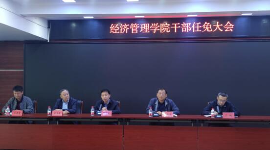 近日学校党委对我院行政领导班子进行整体考核,经过全面民主推荐,全体教师认真谈话,学校党委认真审核,完成了2023年学院的行政领导班子换届工作。经学校党委决定,耿玉德同志不再担任经济管理学院院长。任命马国勇同志为经济管理学院院长,卢宏亮、尚航标同志任经济管理学院副院长。刘守新副校长出席了学院干部任免大会并讲话,刘守新副校长代表学校党委对耿玉德同志担任院长期间的工作做了充分的肯定,对学院新领导班子的组成表示祝贺并提出了殷切的希望,希望新领导班子继承学院的光荣传统,在新的征程中开拓进取,不断取得进步。马国勇院长做表态发言时表示,在未来的工作中,坚持和加强党对学院事业的全面领导,坚持民主集中制;坚持问题导向,打造服务型管理;勇于担当,主动作为;廉洁自律,求真务实。