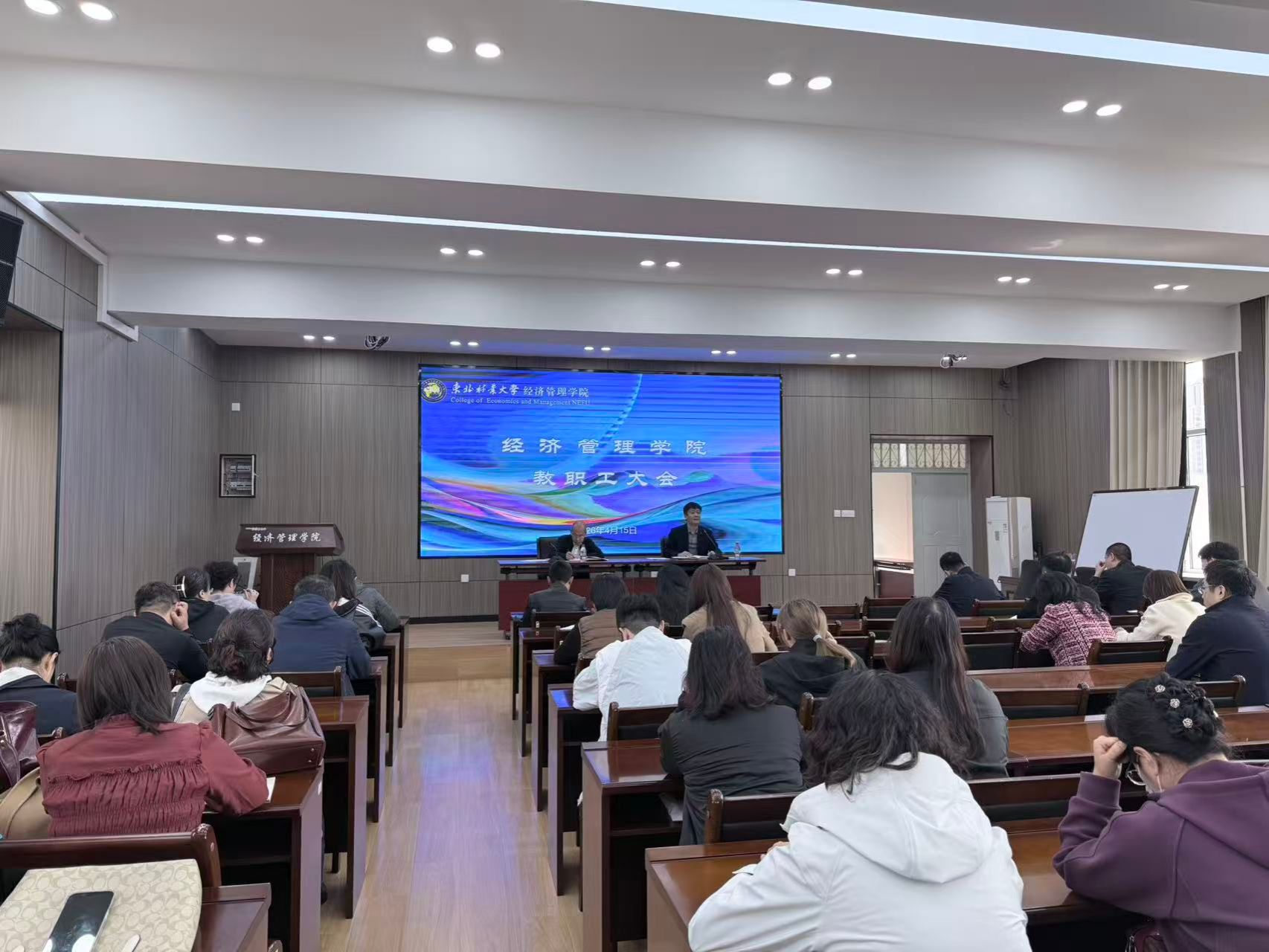2026年4月15日下午,经济管理学院在主东502室召开全体教职工大会。学院领导班子及全体教职工参会,共谋下一阶段发展蓝图。