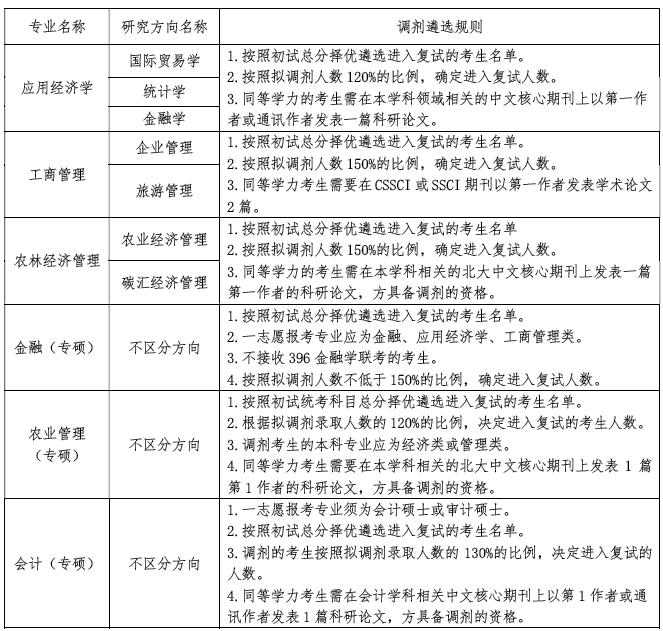 3.对于同一一级学科下的学术型硕士研究生录取说明:同一一级学科的各研究方向,合并一起复试后,按考生总成绩从高到低录取。已被确定为拟录取的考生,按考生总成绩从高到低的顺序可重新选择研究方向。如考生所选择的研究方向招生人数已满,而考生不同意调换至其他研究方向的,可向招生学院提出放弃拟录取资格的申请;因调整方向导致考生放弃拟录取而产生的剩余招生计划,可由当次复试合格考生中按总成绩由高到低择优递补。