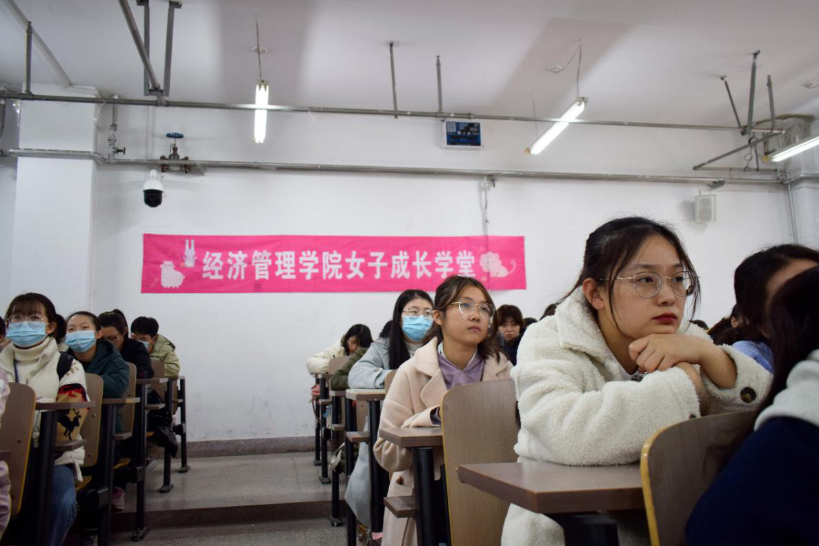 10月14日13:40 由经济管理学院心理健康指导中心策划并举办的女子成长学堂开幕式于丹青101举行。开幕式第一课邀请到外国语学院的田雪凌老师进行开幕式主讲,课题为优雅与品味—国际商务礼仪零接触。