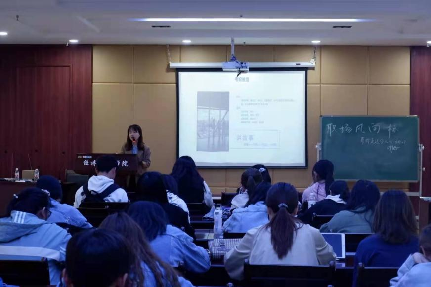 为引导学生准确进行自我定位和职业规划,进一步做好学院就业指导培训工作,5月6日晚6点,经济管理学院在成栋楼1101举办优秀校友职业生涯规划专题分享会,邀请学院优秀校友代宇彤为2019级学生进行了分享。