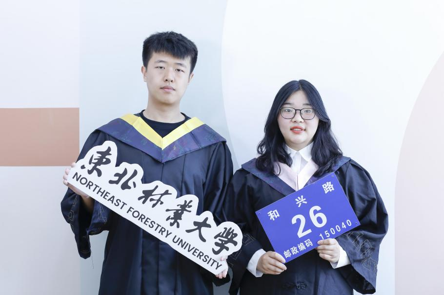 2019级硕士郭丹阳表示:“感谢学院提供的拍照机会,现场还有很多道具,拍照过程非常顺利!作为硕士生,我在东林学习的时间只有短短两年,但东林留给我的回忆却汹涌。感谢我的导师,感谢东北林业大学,感谢我的同学,希望我们都能带着这段美好的回忆,满怀希望奔赴未来的人生!”