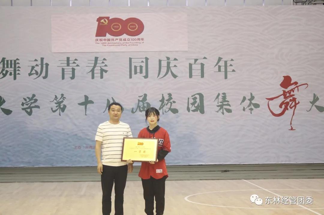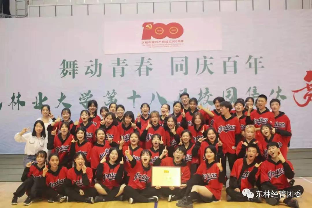 2021年6月19日晚19:30,东北林业大学第十八届校园集体舞大赛准时开幕。身处第十四顺位,见证着一个又一个学院的精彩表演,由衷地为他们欢呼的同时,压力也如影随形。随着一系列表演到达高潮,外国语学院以95.7分的高分暂时位居第一。面对前所未有的压力,经济管理学院集体舞代表队沉心静气,以全力之姿尽情释放,训练期的忙碌和刻苦为他们的表现奠定了成功的基调。最终,经过激烈的角逐,经济管理学院斩获东北林业大学第十八届校园集体舞大赛第一名的桂冠!而这,是经济管理学院在这片场地第五年蝉联此桂冠!此振奋人心的时刻,正是以舞动青春之姿,与余同庆百年!