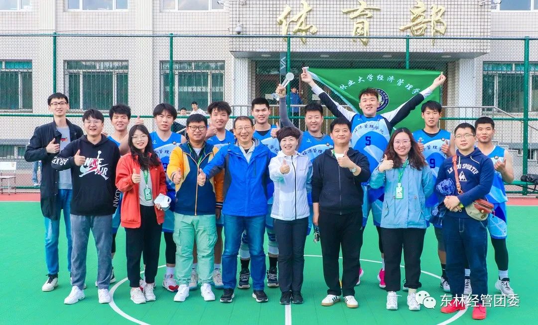 天空划过一道美丽的弧线,进了!全场又一次沸腾!比分定格在77:57!我们又一次摘下了桂冠!一场比赛,酣畅淋漓;挥洒汗水,肆意青春。绝妙的抄截,妙传,盖帽,跳投,胯下运球,远距投篮给观众带来了一场视觉盛宴。伴随矫健的步伐而落下的滴滴汗水最终都凝聚成球场上坚定的目光与心中必胜的信心。经济管理学院党委书记王维宏为我院冠军球队颁发象征荣誉的冠军奖杯,并与队员亲切合影。