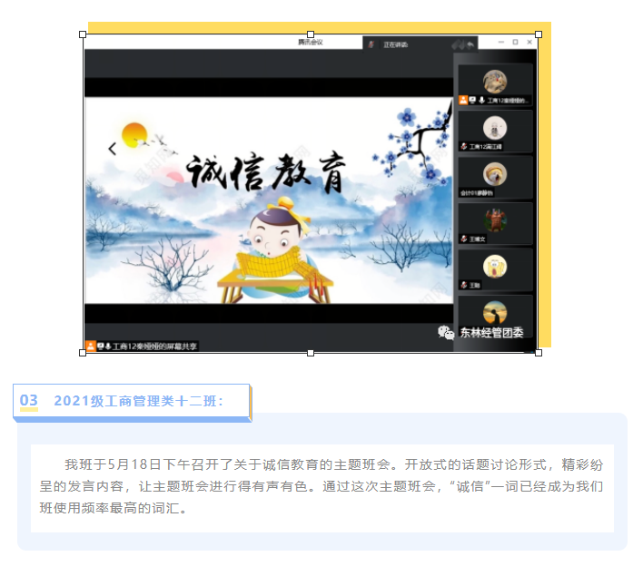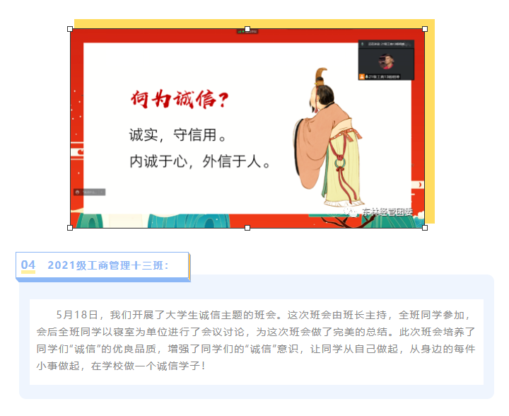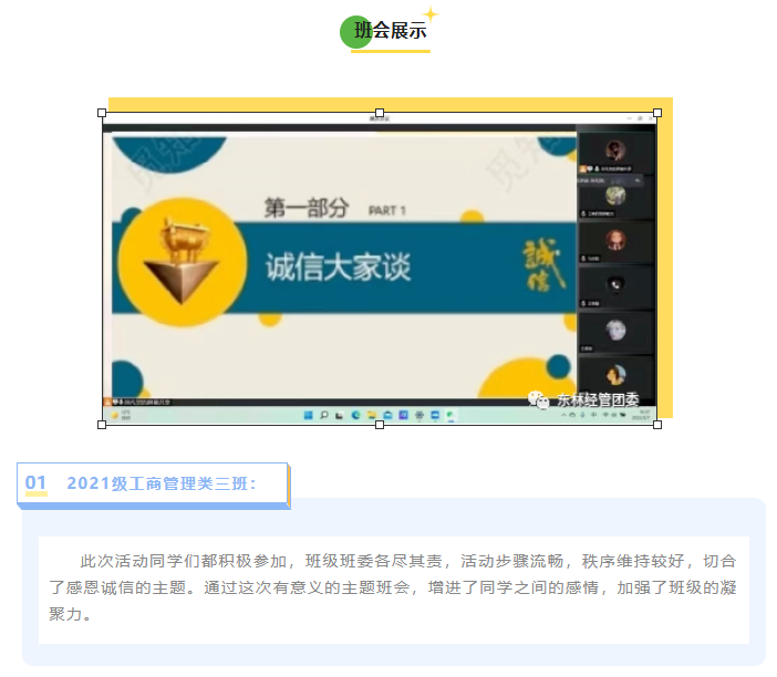【经管V资助】诚信立学,诚信立行 | 我院2021级各班开展诚信教育主题班会
