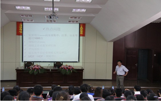 7月8日上午9点在主西002室,南京林业大学张敏新教授做了题为“木材加工企业规模经济性研究”的学术报告,报告主要讲述了中国人造板工业发展情况以及关于规模经济问题,运用案例进行实证研究,得出结论。