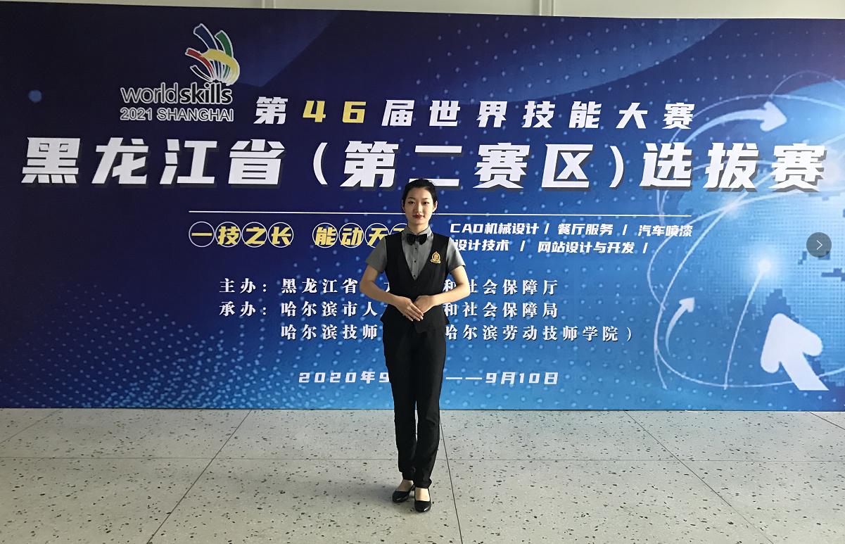 2020年9月9日,由黑龙江省人力资源和社会保障厅主办的第46届世界技能大赛餐厅服务赛项黑龙江省选拨赛在哈尔滨落下帷幕。经济管理学院18级旅游管理专业韩诺同学获得了第三名的好成绩,此项赛事一二三等奖每项只设一名,这是我院第一次参加该项赛事。