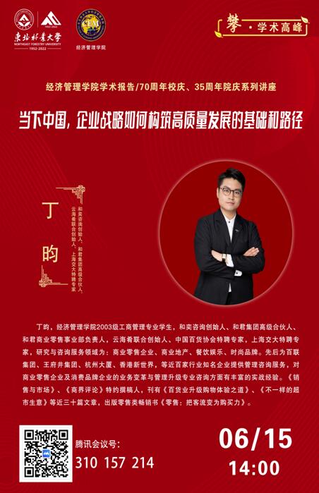 主讲嘉宾: 丁昀 经济管理学院2003级工商管理专业学生,和奕咨询创始人、和君集团高级合伙人、和君商业零售事业部负责人,云海肴联合创始人、中国百货协会特聘专家,上海交大特聘专家