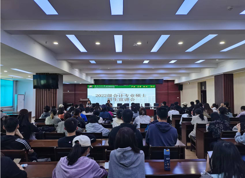 在专业介绍环节,李明娟教授向同学们介绍了工商管理学科会计方向研究生培养、科研与学科建设等情况。特别强调东北林业大学的工商管理学科会计方向根植东北国有林区,服务地方,以服务生态文明建设为重点,培养具有国际视野的高素质、应用型会计专门化人才。工商管理学科会计方向在培养目标、培养要求、培养方案设计、论文选题、教学手段等多方面体现生态文明建设与会计的互动关系,探索会计人才的创新性与应用性有机结合的培养模式。通过校企合作,发挥学校林区及林业资源特色,凝练生态文明建设中的会计问题,以服务林区、服务现代林业、服务地方经济发展、实现生态文明建设目标为己任。