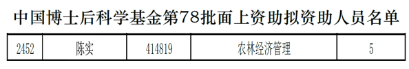 近日,中国博士后科学基金会公布了第78批面上资助拟资助人员名单,我院陈实老师成功入选,获得资助。