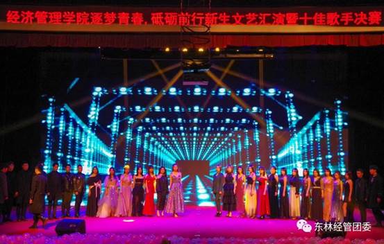 10月26日晚18:00,经济管理学院“逐梦青春,砥砺前行”新生文艺汇演暨十佳歌手决赛在科学会堂隆重举行,受邀出席本次活动的领导及老师有:经济管理学院党委副书记、副院长张艳波,2016级辅导员老师:王海飙、陈思,2019级辅导员老师:聂英男、左爱琳。