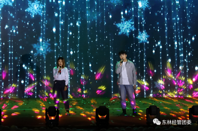 辅导员老师们与各位20级代班以及院心理最后带来的深情演唱,寄托了老师对我们的希冀与爱,给予我们前进的力量,也为这次迎新晚会画上一个完美的句号。“我会一直都在,一起勇往直前”,我们在一起遇见最美好的经管。