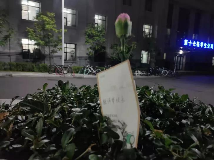▲代表师生情谊的康乃馨出现在校园的各个角落