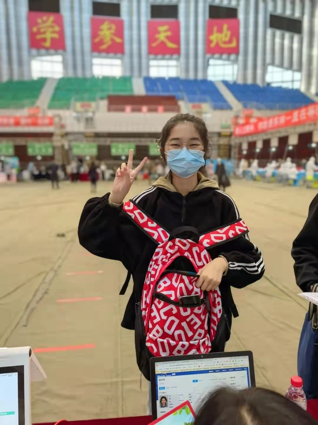 顺着蓝色通道走进校体育馆,等待和迎接新生报到的还有我们经济管理学院的各位老师以及新生代理班主任。正是因为他们的辛勤付出,新生的入学之旅更加有序、顺利。