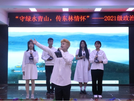 在2021级同学带来的诗朗诵《塞罕坝之歌》中,我们看到了这样一些人,他们将寂寞埋于土壤,将执着装进理想,在守护的“绿色”中寄托着自己的希望。他们以艰苦创业为核心,以科学求实和开拓创新为支撑,以无私奉献和爱岗敬业为价值取向,我们在这首诗中体会到了塞罕坝人献身“绿色事业”的豪情壮志,感受到了他们独特的理想追求。