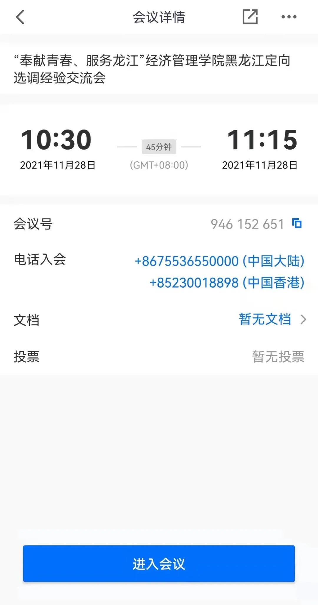 分享会于11月28日上午10点30分借助腾讯会议平台举行,本次会议的主题为“奉献青春、服务龙江”。李欣航学姐先向大家介绍了定向选调生的含义,就是部分省份面向国内重点高校定向选调一批优秀大学毕业生,它是由省委组织部统一组织的,选调生将会到省市直属机关公务员岗位上工作。定向选调工作是省干部人才引进工作的一个新突破,是一条吸引高层次人才的绿色通道。