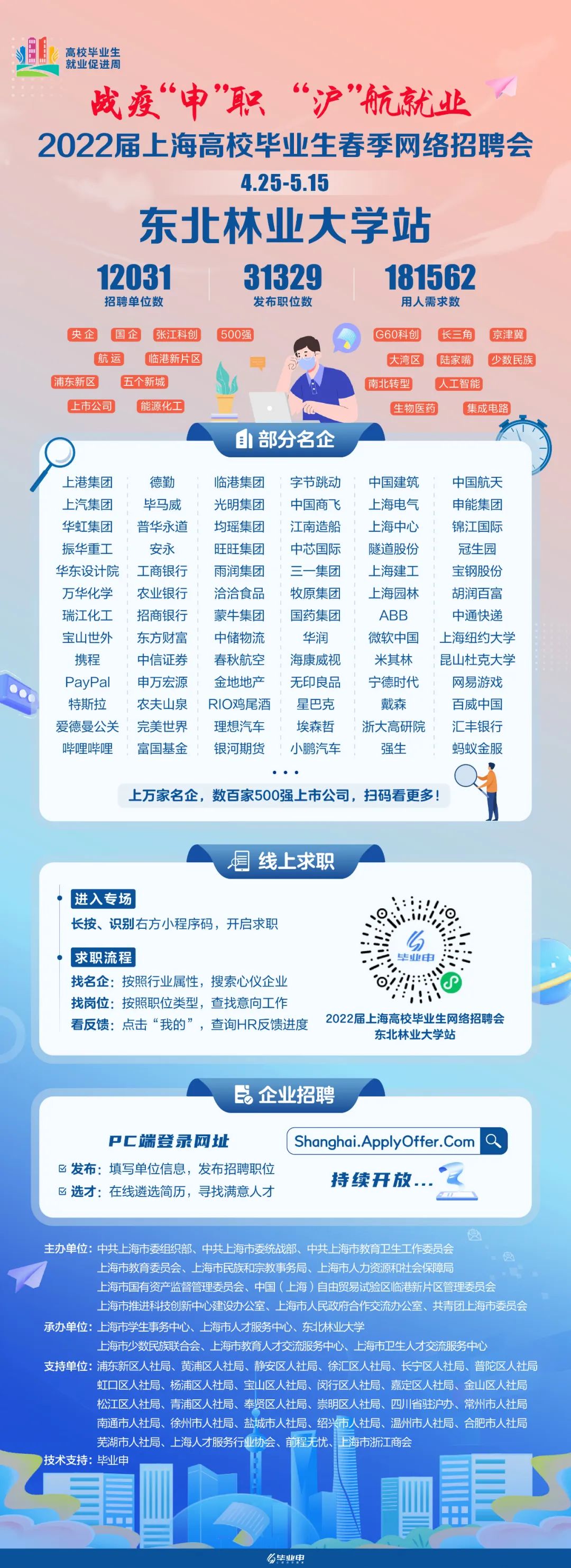 经管就业 | 1.2万+单位,18万+岗位,上海市最大规模2022届毕业生春季网络招聘(东北林业大学站)