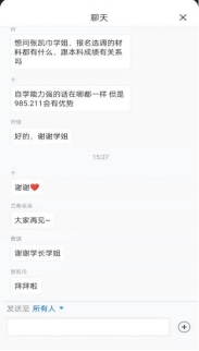 在最后的提问环节里,同学们也对考研、就业、考公和考取选调生等4个方面分别提出了自己的疑问,都得到了各位分享同学的热情回答,本次分享会可谓是收获满满、受益匪浅!